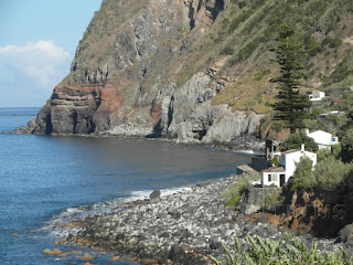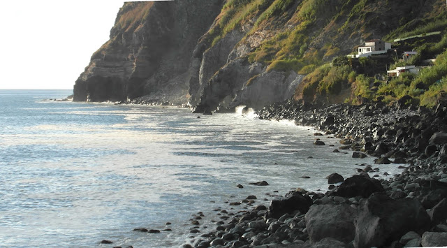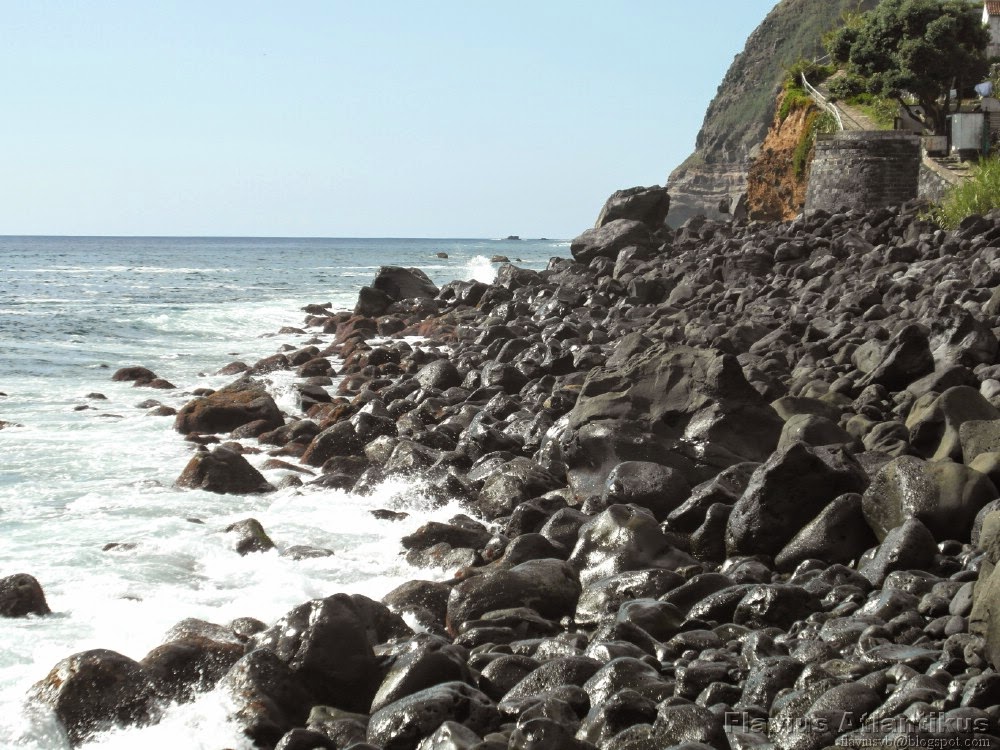 Aqui se nota que o mar só deixa de "comer" terra quando encontra basalto (ou traquito) para lhe fazer frente. Por isso não é difícil de imaginar o antes e o depois destas fajãs ao longo dos séculos.